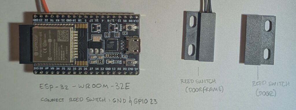 Wire it up to GPIO 23 with a pull-up resistor (the ESP32 has internal pull-ups you can enable in software), and suddenly your microcontroller can know the state of your door.